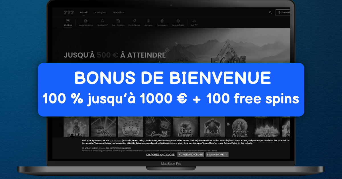 Quel est le bonus de bienvenue chez 777 Casino ?